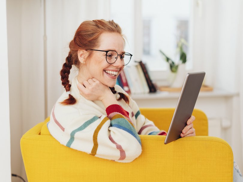 Ein Tablet zeigt die Startseite des DON BOSCO magazins mit Artikeln zu Familienthemen wie Spuren hinterlassen und Umzugstipps.