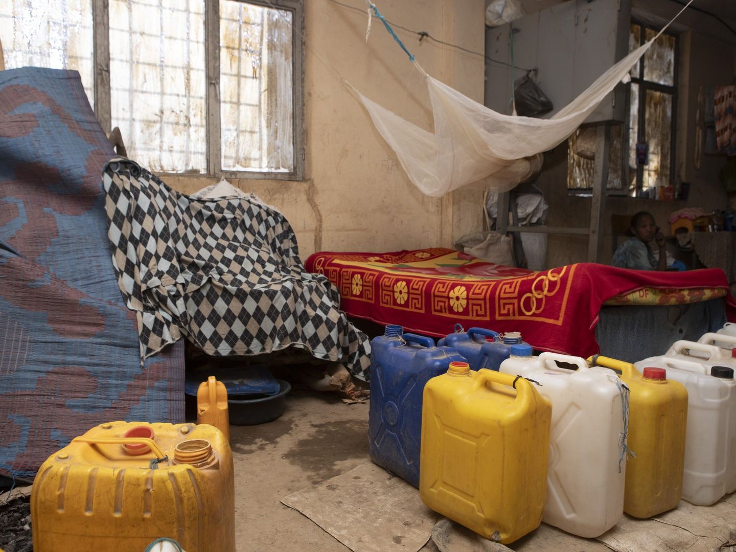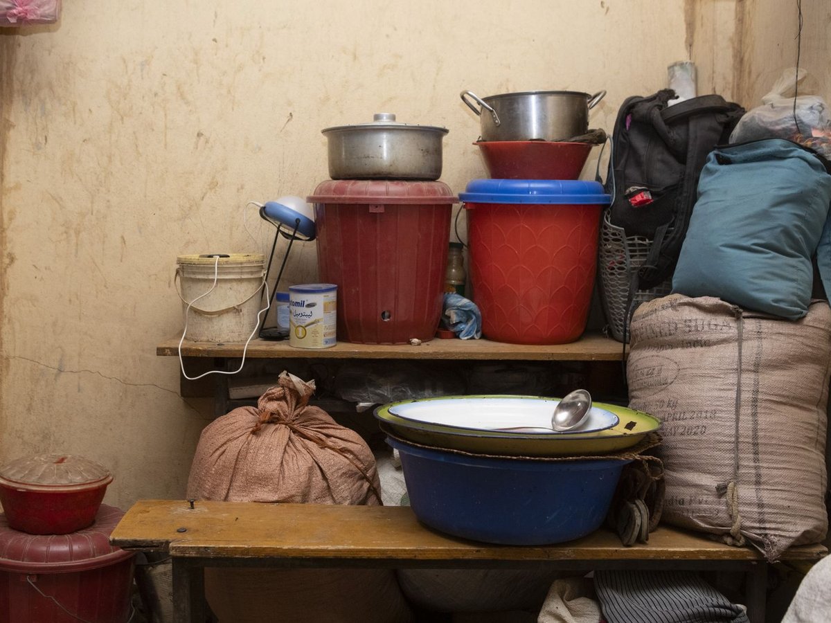 Ein beschädigtes Schulgebäude bietet zumindest ein festes Dach über dem Kopf. Sesen und ihre Kinder teilen sich einen Klassenraum mit zwei weiteren Familien. Sie schlafen auf dem Boden. Sauberes Wasser und Lebensmittel sind knapp. Trotz der schweren Bedingungen bringt Sesen hier ihr jüngstes Kind zur Welt.